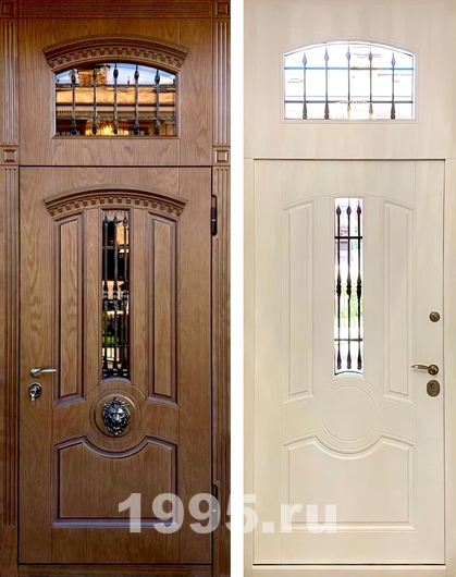 Стальная дверь арочного типа МДФ со вставками, стеклопакетом и решеткой