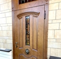 Дверь с отделкой МДФ, 3х-камерным стеклопакетом и кованой решеткой
