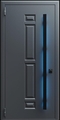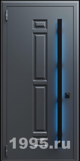 Стальная дверь с металлофиленкой, длинной ручкой с подсветкой и темно-серым порошковым окрашиванием RAL 7021 (тип №5)